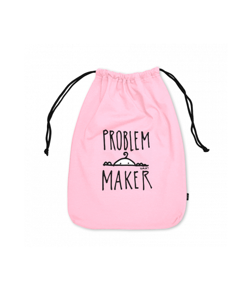 Large cotton pouch with design 1385 PROBLEM MAKER in color BABY PINK