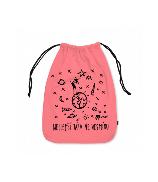 Large cotton pouch with design 1387 NEJLEPŠÍ TÁTA VE VESMÍRU in color LOSOSOVA