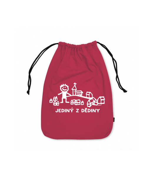 Large cotton pouch with design 1393 JEDINÝ Z DĚDINY in color CHILLY PEPPER RED