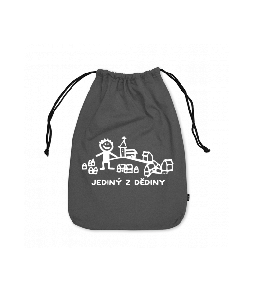 Large cotton pouch with design 1393 JEDINÝ Z DĚDINY in color GRAFIT