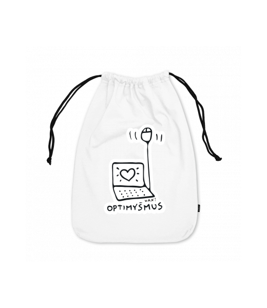 Medium cotton pouch with design 1040 OPTIMYŠMUS in color WHITE