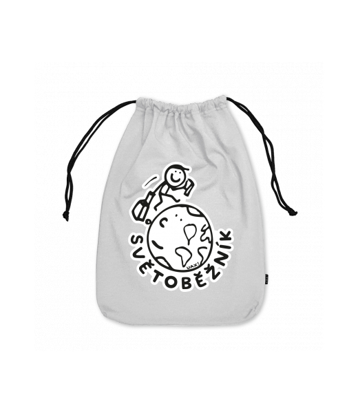 Medium cotton pouch with design 1047 SVĚTOBĚŽNÍK in color CEMENT