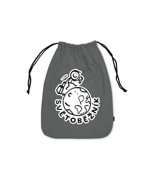Medium cotton pouch with design 1047 SVĚTOBĚŽNÍK in color DARK GRAY