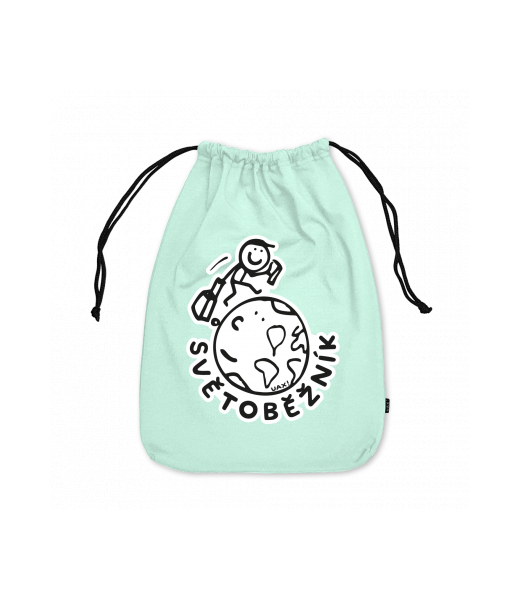 Medium cotton pouch with design 1047 SVĚTOBĚŽNÍK in color MINT