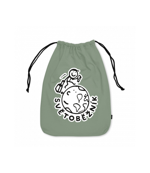 Medium cotton pouch with design 1047 SVĚTOBĚŽNÍK in color OLIVA