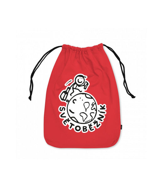 Medium cotton pouch with design 1047 SVĚTOBĚŽNÍK in color RED