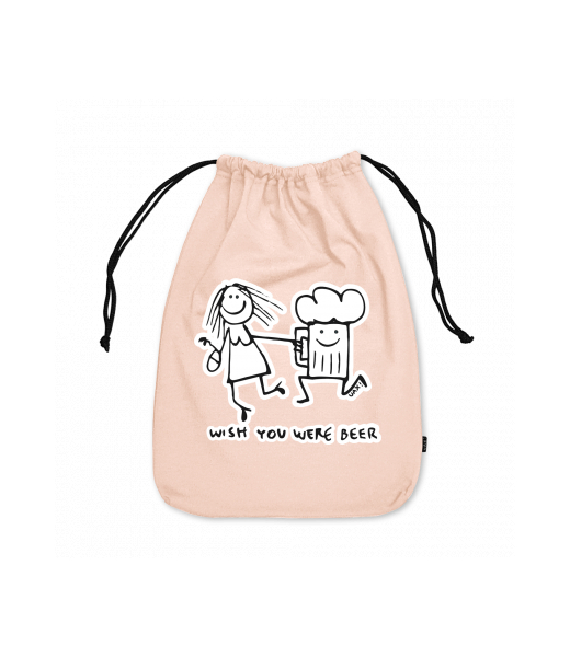 Medium cotton pouch with design 1049 WISH YOU WERE BEER in color CAPPUCINO