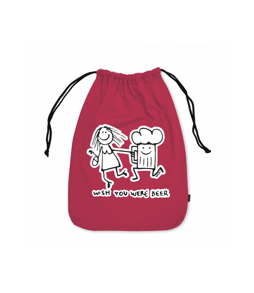 Medium cotton pouch with design 1049 WISH YOU WERE BEER in color CHILLY PEPPER RED