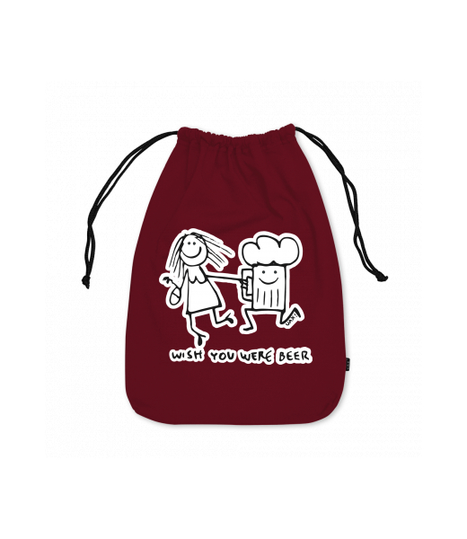 Medium cotton pouch with design 1049 WISH YOU WERE BEER in color DARK RED