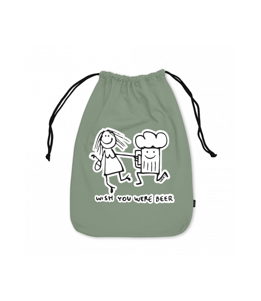 Medium cotton pouch with design 1049 WISH YOU WERE BEER in color OLIVA