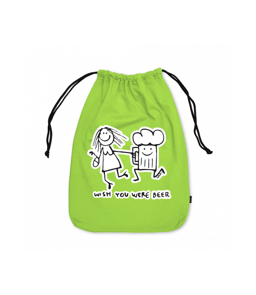 Medium cotton pouch with design 1049 WISH YOU WERE BEER in color PARROT GREEN