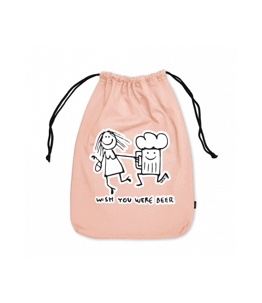 Medium cotton pouch with design 1049 WISH YOU WERE BEER in color PEACH