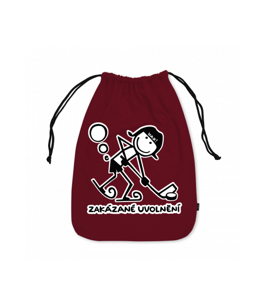 Medium cotton pouch with design 1059 ZAKÁZANÉ UVOLNĚNÍ in color DARK RED