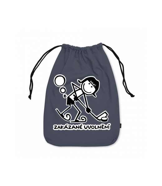 Medium cotton pouch with design 1059 ZAKÁZANÉ UVOLNĚNÍ in color GRAY INK