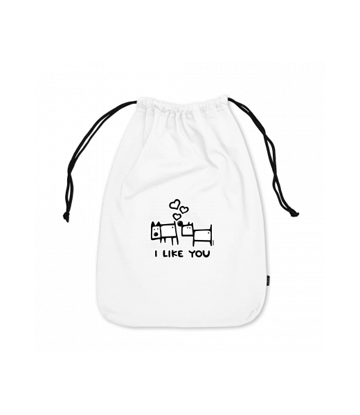 Medium cotton pouch with design 1066 I LIKE YOU in color WHITE