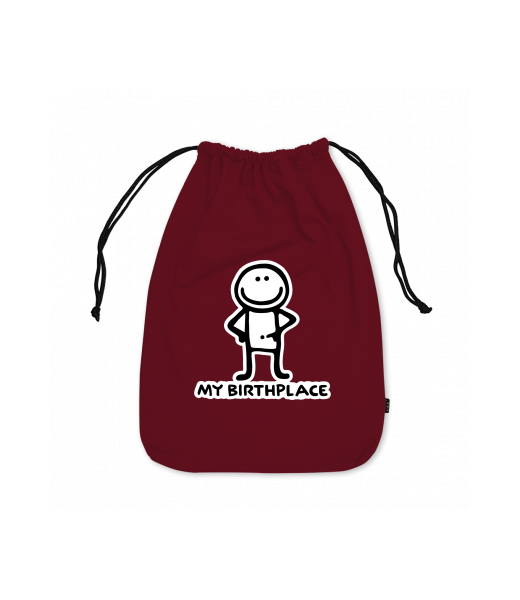 Medium cotton pouch with design 1069 MY BIRTHPLACE in color DARK RED