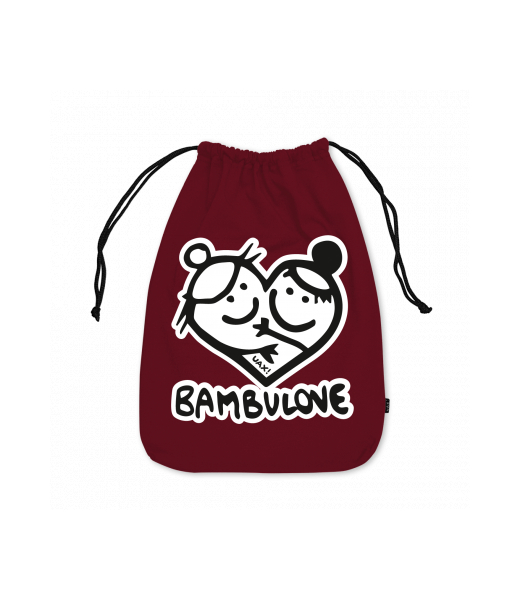 Medium cotton pouch with design 1079 BAMBULOVE in color DARK RED