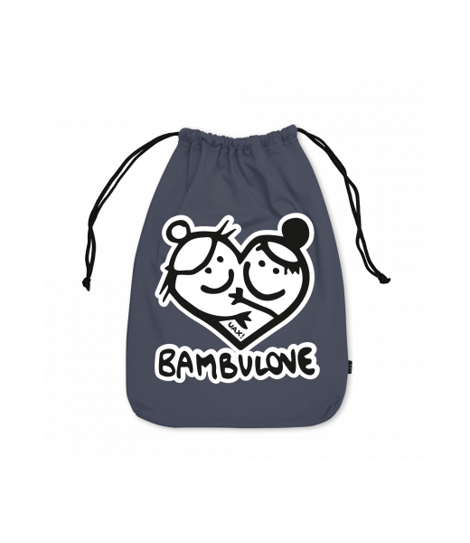 Medium cotton pouch with design 1079 BAMBULOVE in color GRAY INK