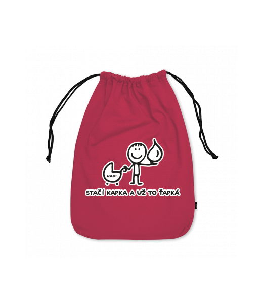 Medium cotton pouch with design 1081 STAČÍ KAPKA A UŽ TO ŤAPKÁ in color CHILLY PEPPER RED