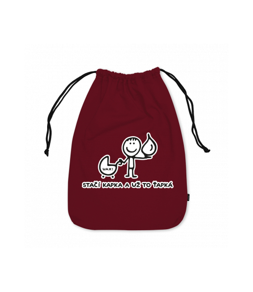 Medium cotton pouch with design 1081 STAČÍ KAPKA A UŽ TO ŤAPKÁ in color DARK RED