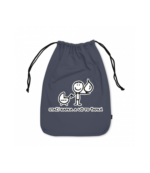 Medium cotton pouch with design 1081 STAČÍ KAPKA A UŽ TO ŤAPKÁ in color GRAY INK