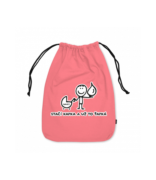 Medium cotton pouch with design 1081 STAČÍ KAPKA A UŽ TO ŤAPKÁ in color LOSOSOVA