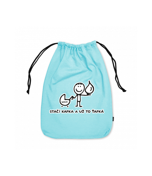 Medium cotton pouch with design 1081 STAČÍ KAPKA A UŽ TO ŤAPKÁ in color PASTEL BLUE