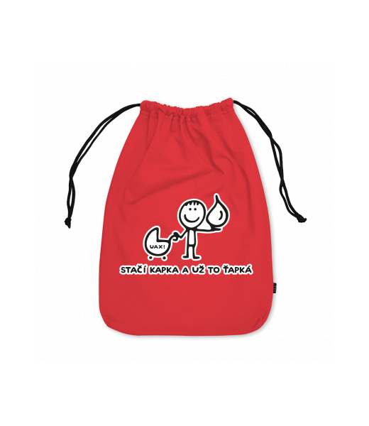 Medium cotton pouch with design 1081 STAČÍ KAPKA A UŽ TO ŤAPKÁ in color RED