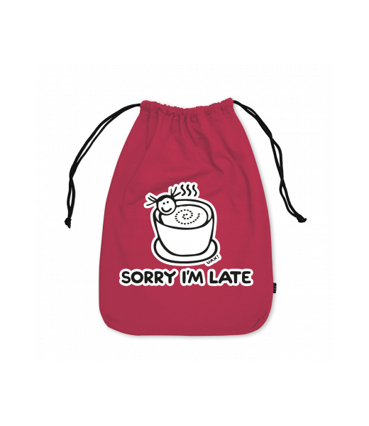 Medium cotton pouch with design 1087 SORRY IM LATE in color CHILLY PEPPER RED