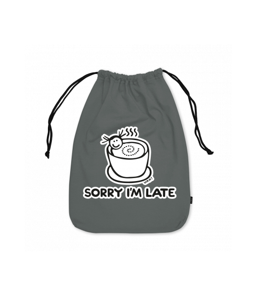Medium cotton pouch with design 1087 SORRY IM LATE in color DARK GRAY