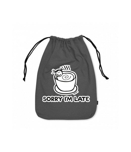 Medium cotton pouch with design 1087 SORRY IM LATE in color GRAFIT