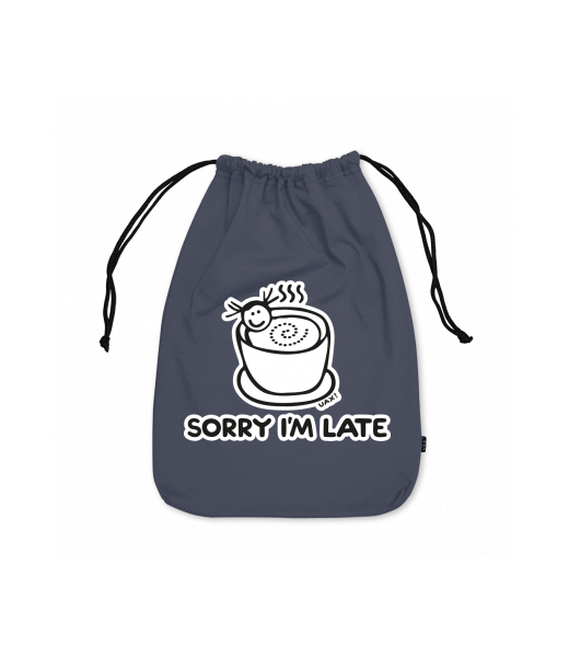 Medium cotton pouch with design 1087 SORRY IM LATE in color GRAY INK