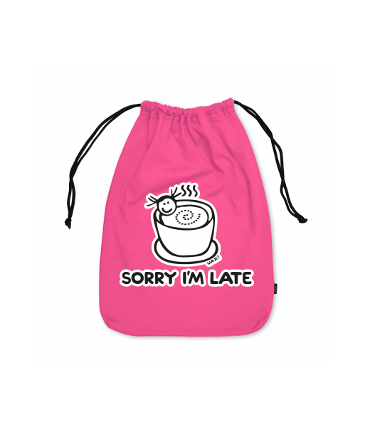 Medium cotton pouch with design 1087 SORRY IM LATE in color INDIAN LILA