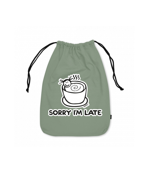 Medium cotton pouch with design 1087 SORRY IM LATE in color OLIVA
