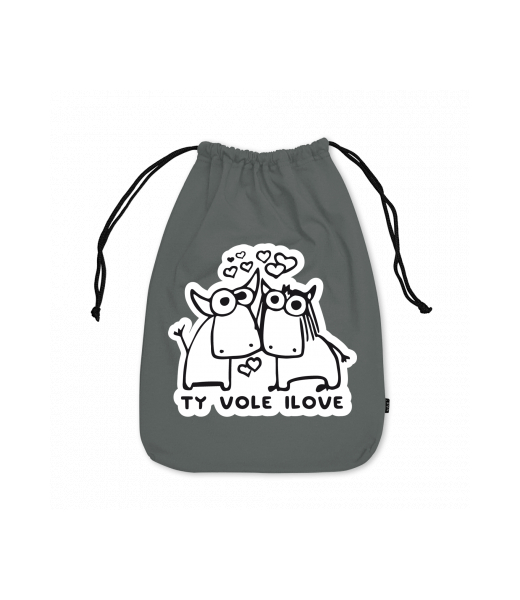 Medium cotton pouch with design 1089 TY VOLE I LOVE in color DARK GRAY