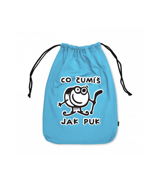Medium cotton pouch with design 1101 ČUMÍŠ JAK PUK in color BLUE ATOLL