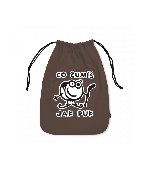 Medium cotton pouch with design 1101 ČUMÍŠ JAK PUK in color CHESTNUT