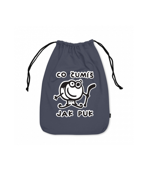 Medium cotton pouch with design 1101 ČUMÍŠ JAK PUK in color GRAY INK