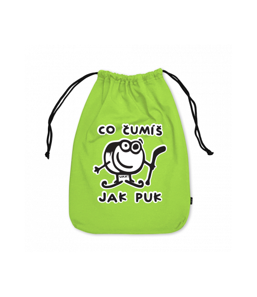 Medium cotton pouch with design 1101 ČUMÍŠ JAK PUK in color PARROT GREEN