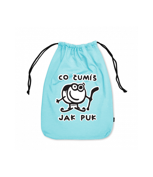 Medium cotton pouch with design 1101 ČUMÍŠ JAK PUK in color PASTEL BLUE