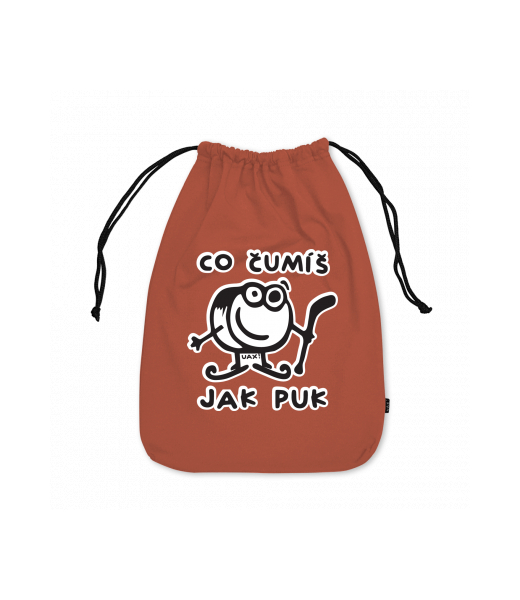 Medium cotton pouch with design 1101 ČUMÍŠ JAK PUK in color TERRA