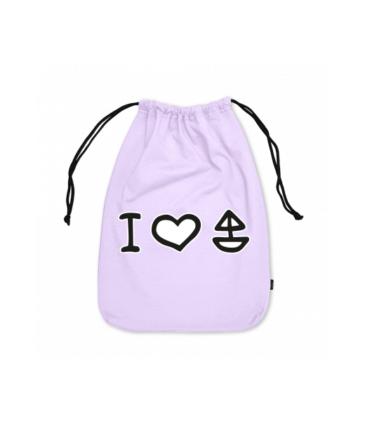 Medium cotton pouch with design 1102 I LOVE YACHTING in color LAVENDER