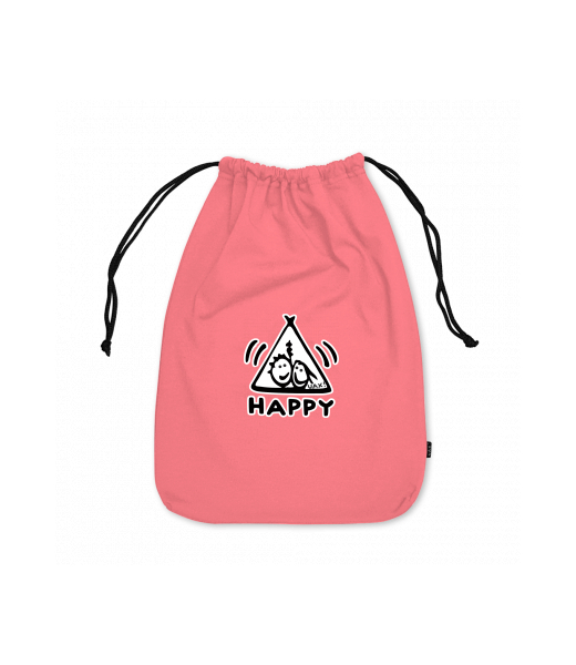 Medium cotton pouch with design 1113 HAPPY in color LOSOSOVA