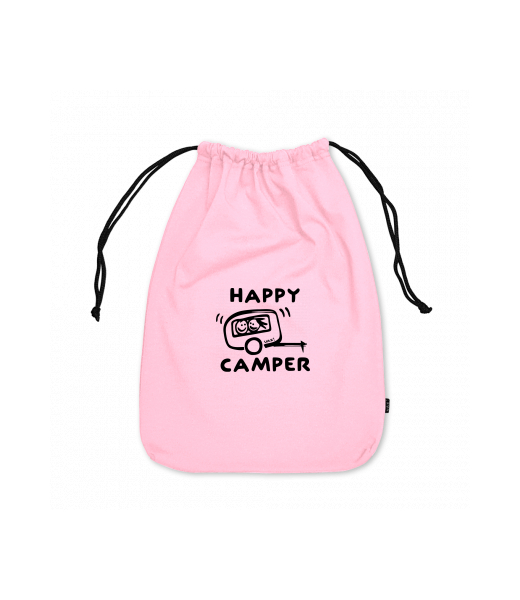 Medium cotton pouch with design 1116 HAPPY CAMPER in color BABY PINK