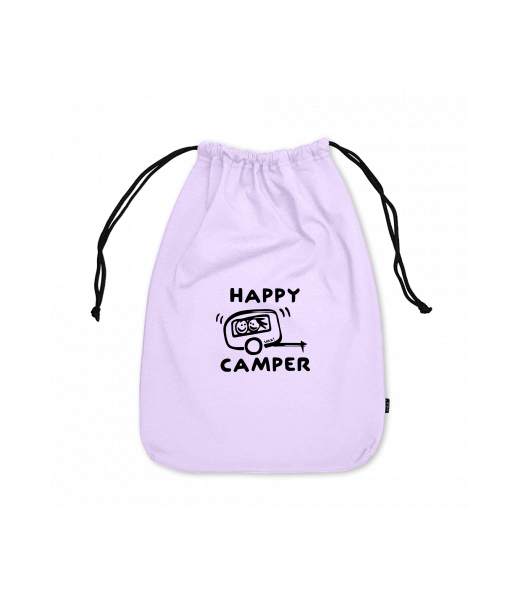 Medium cotton pouch with design 1116 HAPPY CAMPER in color LAVENDER