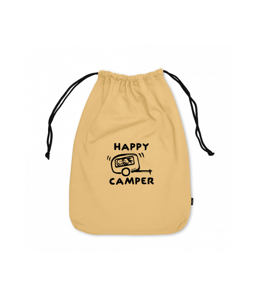 Medium cotton pouch with design 1116 HAPPY CAMPER in color MUSTARD
