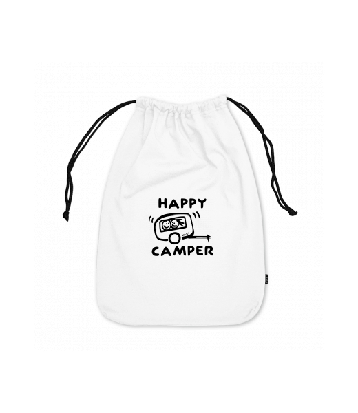 Medium cotton pouch with design 1116 HAPPY CAMPER in color WHITE
