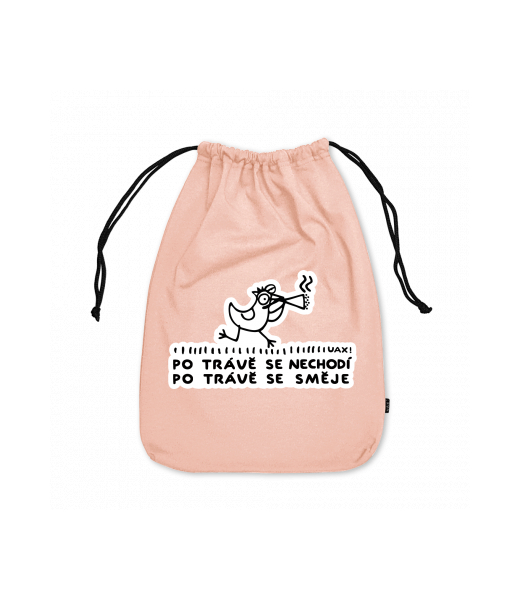 Medium cotton pouch with design 1118 PO TRÁVĚ SE SMĚJE in color PEACH