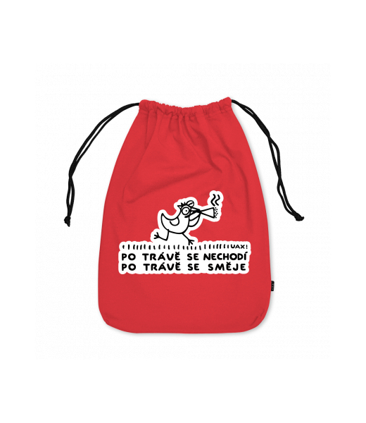 Medium cotton pouch with design 1118 PO TRÁVĚ SE SMĚJE in color RED