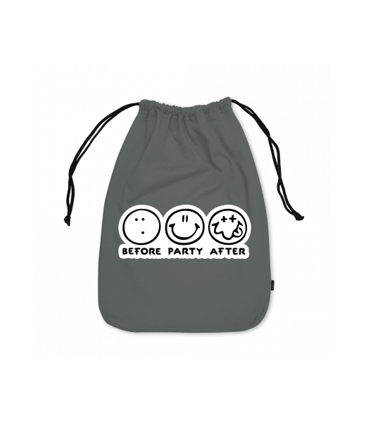 Medium cotton pouch with design 1120 BEFORE PARTY AFTER in color DARK GRAY